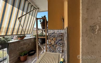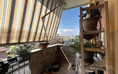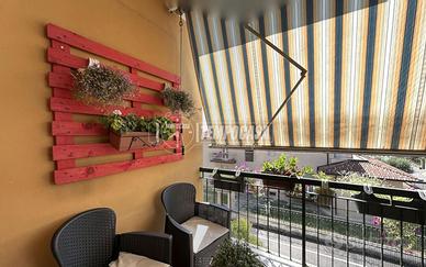 Dal soggiorno si accede a un ampio balcone, perfetto per pranzi all'aperto o per godersi un momento di relax all'aria aperta.
