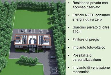 Rif:(124758873) - ***CONSEGNA PRIMAVERA 2027 ***Ti proponiamo in esclusiva di vendita ed in anteprima questa villetta a schiera all'interno di una nuova e prestigiosa costruzione in fase di imminente avvio per la realizzazione complessiva di 8 appartamenti in villetta a schiera frutto di un progetto innovativo, sostenibile e green. La costruzione realizzata interamente con materiali di altissima qualità e tecniche di ultima generazione renderà ciascuna abitazione unica nel suo genere potendo prevedere in fase di prenotazione importanti personalizzazioni quali ad esempio la scelta della tipologia di riscaldamento: aria/aria o a pavimento fino alla realizzazione del secondo bagno o terzo bagno. Gli appartamenti saranno tutti in classe A e con emissioni quasi zero (NZEB-No Gas) Le singole unità disporranno tutte del proprio giardino privato ed esclusivo oltre al posto auto ed a un ulteriore verde scoperto esclusivo all'interno del complesso residenziale. Possibilità di acquistare un ulteriore posto auto all'interno del complesso residenziale. - Classe: A4 - IPE: 175.00 kWh/mq anno
