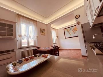 Proponiamo in vendita in centro a Cecina (LI), appartamento di 105 mq. calpestabili, ubicato al secondo ed ultimo piano di palazzo storico ben tenuto sia esternamente che internamente. L'appartamento, completamente ristrutturato, è composto da ampia zona giorno con cucina abitabile, camino e zona living, 2 camere matrimoniali e bagno a servizio del piano con piccolo balcone esterno che affaccia sulla corte interna della proprietà. Da zona di passaggio, attraverso una scala in legno si accede al piano superiore dove troviamo un sottotetto, da cui è stata ricavata una terza camera matrimoniale con il suo bagno e vari locali adibiti a ripostiglio. Ogni locale dell'abitazione è servito da impianto di riscaldamento autonomo e condizionamento. Gli infissi sono stati tutti sostituiti con nuovi in PVC con doppio vetro per garantire isolamento acustico e bassi consumi energetici. A completare la proprietà troviamo nell'androne condominiale, a servizio delle sole 2 abitazioni sovrastanti, locale magazzino di proprietà esclusiva e giardino recintato sulla corte interna dell'immobile sempre di proprietà. Classe energetica C.