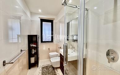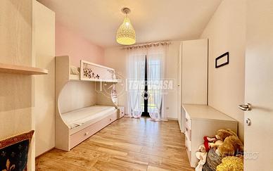 La zona notte è composta da cameretta, camera matrimoniale, un pratico ripostiglio e disimpegno. A servizio dell'appartamento troviamo due bagni ben distinti: uno dedicato alla zona giorno e uno dedicato alla zona notte. La doppia esposizione regala all'appartamento un'ottima luminosità in ogni momento della giornata.