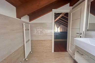 Al piano superiore troviamo la mansarda, ampia e versatile: può diventare una seconda camera, uno studio, una zona relax o uno spazio hobby, in base alle esigenze di chi abiterà la casa.