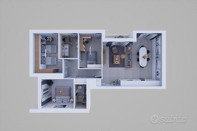 Quadrilocale Nuovo di 106 mq al Primo Piano con Doppi Servizi, Balcone e Box Incluso