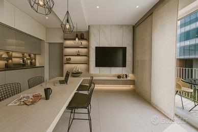 Attualmente in fase di ultimazione, l'appartamento offre ambienti luminosi e ben distribuiti. Il soggiorno si apre su un balcone privato, perfetto per concedersi momenti di relax all'aperto, mentre l'angolo cottura si integra armoniosamente con la zona living creando uno spazio accogliente e funzionale per la vita quotidiana. La zona notte comprende due camere da letto proporzionate e un bagno finestrato, moderno e completato con finiture di qualità. A seconda della posizione all'interno del complesso, l'immobile può offrire una vista aperta sul mare oppure sul centro storico di Chioggia, regalando scorci suggestivi del paesaggio urbano e lagunare.