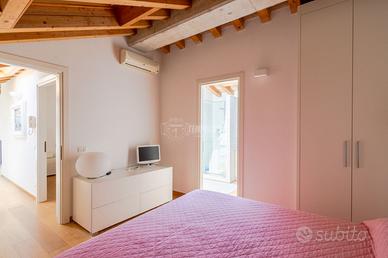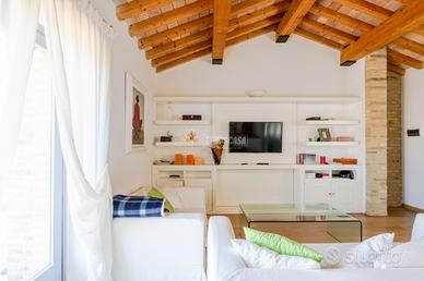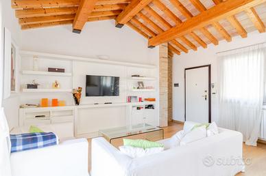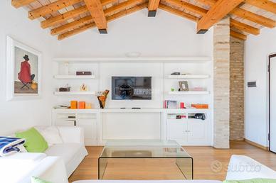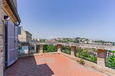 ZONA Ci troviamo nel pieno centro Storico di Civitanova Marche, in una posizione irripetibile. Il condominio di cui fa parte l'attico è stato edificato nel 2002 dal noto Architetto Guerri. Tutti i principali servizi (alimentari, bar, farmacia, treno, bus) sono facilmente raggiungibili a piedi. CAPITOLATO L'appartamento è situato all'Ultimo Piano accessibile tramite ascensore. Il condominio è dotato di cappotto esterno nelle pareti intonacate, mentre nelle parti in pietra a vista, il cappotto è interno. Porta d'ingresso Blindata Infissi in Legno con doppio vetro ovunque ad eccezione delle Porte Finestre dove abbiamo Infissi in Alluminio interno e Legno Esterno con Doppio Vetro. Zanzariere e Persiane ovunque. Pavimentazione in Parquet ovunque. Caloriferi Tubolari in Alluminio ovunque. Caldaia a Condensazione sostituita nel 2013. Aria Condizionata presente con n° 3 Split (Soggiorno e 2 camere) oltre a predisposizione nella 3° camera Controsoffitto in Cartongesso con faretti ad incasso in Soggiorno Porte Interne tamburate in Legno Laccate Bianche. METRATURE Piano Ultimo: Soggiorno (29 Mq), Cucina Abitabile (21 Mq), Soppalco (14 Mq), Disimpegno zona notte (5 Mq) Camera Doppia (16 Mq), Bagno (5 Mq), Camera Matrimoniale (13 Mq), Bagno in camera (8 Mq) e Bagno (8 Mq) Dalla Zona Giorno si accede ad un Terrazzo CON VISTA MARE di oltre 20 Mq. PERCHÈ ACQUISTARE QUESTO IMMOBILE: 1 - Posizione 2 - Sfogo esterno 3 - Finiture 4 - Vista Riferimento Immobile: AT02 - Classe: NC