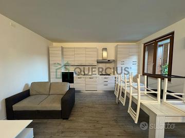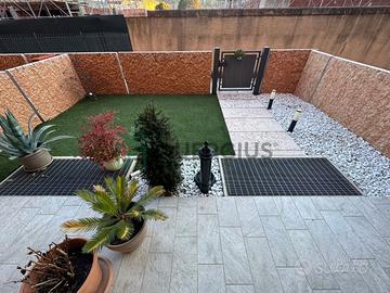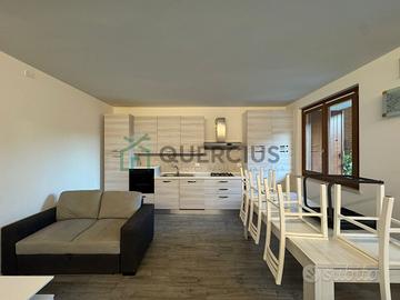 L'appartamento gode di ingresso indipendente attraverso il giardino, garantendo privacy e tranquillità. All'interno troviamo una luminosa zona giorno open space; la cucina moderna e completamente attrezzata si integra perfettamente con l'ampio soggiorno dotato anche di divano confortevole. Le finiture sono moderne: pavimentazione effetto legno su tutta la superficie abitabile, infissi nuovi in legno con doppi vetri che assicurano isolamento termico/acustico.