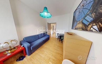 Ingresso, luminoso soggiorno con uscita sul balcone con vista Duomo, cucina , camera da letto matrimoniale con secondo balcone, cameretta e bagno.
