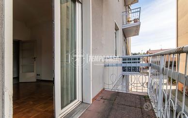 Ingresso, luminoso soggiorno con un balcone, cucina abitabile con secondo balcone, due ampie camere da letto matrimoniali e bagno.