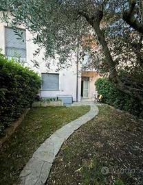 Unità su due livelli collegati tramite scala interna e composto da soggiorno, cottura, camera, bagno, porticato e porzione di giardino al piano terra. mentre al primo piano troviamo una camera, sala lettura, bagno, disimpegno e balcone. Al piano interrato una autorimessa di 17 metri quadri e una piccola cantina di 8 metri quadri.