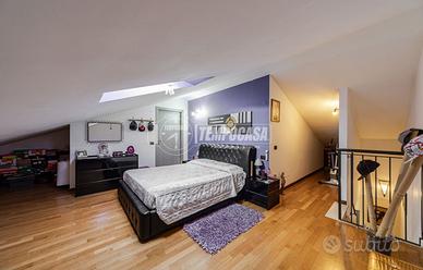 Il piano sottotetto, collegato da una comoda scala interna, ospita un ampio locale open space dove è stata ricavata un'ulteriore camera da letto matrimoniale e un secondo servizio.