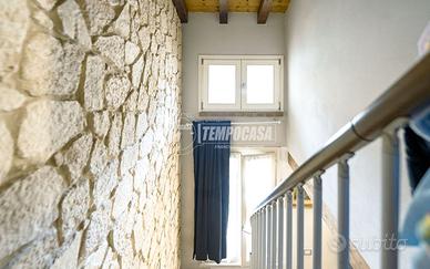 è rifinito con infissi in LEGNO DOPPIO VETRO accessoriati con INFERRIATE su ogni punto luce e ricoperto da pavimentazione in GRES PORCELLANATO lungo l'intera unità;