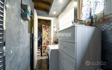1° LIVELLO: ingresso in AMPIO e LUMINOSO OPEN SPACE CON CUCINA A VISTA e BAGNO FINESTRATO CON BOX DOCCIA;