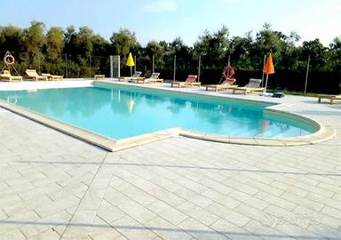 L'immobile è situato all'interno di una struttura ricettiva e viene venduto con quattro posti auto scoperti e utilizzo della piscina.