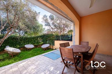 Sul retro troviamo un grazioso cortile privato, perfetto per creare una zona relax fresca e riservata, ideale per pranzi all'aperto o momenti di tranquillità dopo una giornata al mare.