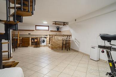 65 mq di taverna al piano seminterrato, collegata internamente, con camino e forno a legna: uno spazio versatile perfetto per taverna, studio, area relax o zona hobby.