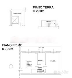 Appartamento al primo piano di edificio condominiale, costituito di soggiorno con angolo cottura,disimpegno, bagno, una camera e un balcone, con annessi un locale ad uso cantina nel piano terra, collegato all'appartamento tramite scala interna ed un locale ad uso ripostiglio anch'esso nel piano