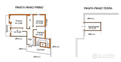 Trattasi di appartamento posto al piano primo composto di ingresso con corridoio, cucina, soggiorno, due camere, un bagno ed un balcone fronte strada con accesso dal soggiorno e dalla cucina.