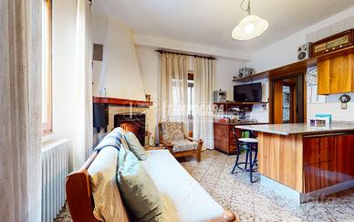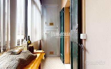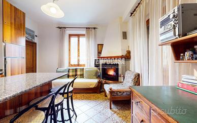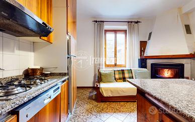 - Ingresso su soggiorno con angolo cottura e camino, con accesso ad un comodo balcone verandato