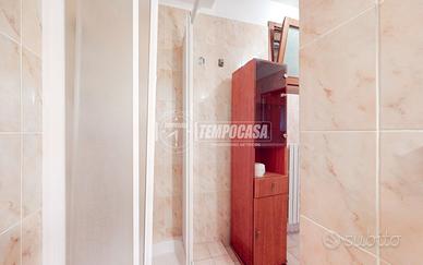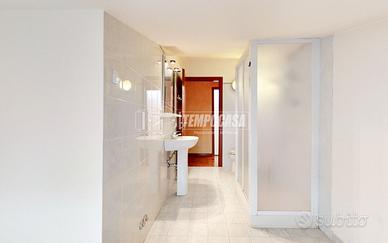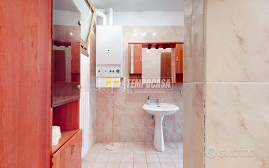 Passando tramite il disimpegno abbiamo accesso al primo bagno dell'appartamento completato da box doccia e angolo lavanderia.