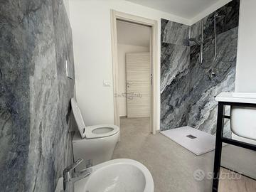 L'appartamento è composto da ingresso su soggiorno/cucina open space, camera matrimoniale spaziosa e bagno finestrato (da completare secondo le proprie esigenze). Gli spazi interni sono valorizzati da pavimenti moderni effetto pietra e infissi nuovi ad alta efficienza energetica. La presenza del videocitofono garantisce sicurezza e praticità nell'accoglienza degli ospiti.