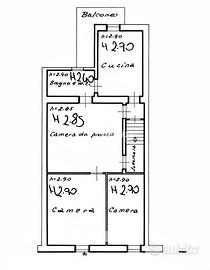 L'appartamento si dispone da un ingressino, cucina abitabile, soggiorno, due camere da letto, un bagno e un balcone.