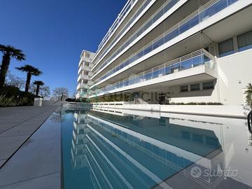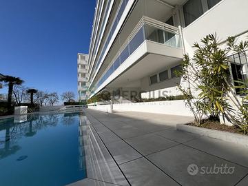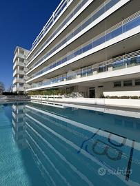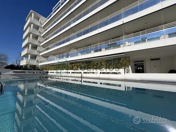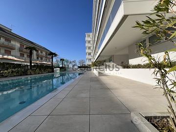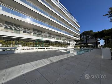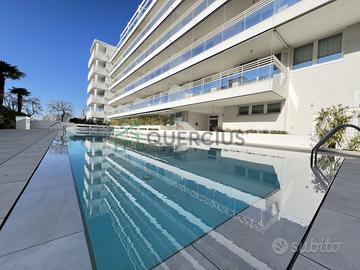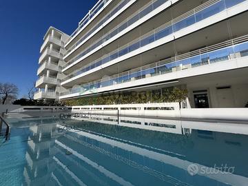 In esclusivo contesto con piscina e a soli 100 metri dal mare proponiamo appartamento al 4° piano con terrazzo e parziale vista mare. L'immobile è stato ultimato nel 2020, è in classe energetica A3 ed è tra i pochi ad avere il riscaldamento a pavimento, le parti comuni sono ben gestite e la piscina condominiale è di generose dimensioni. L'appartamento è composto da: luminoso soggiorno con angolo cottura con uscita su terrazzo attrezzato con mobile da esterno dal quale si può godere di una vista aperta e di scorge anche il mare, due camere da letto di cui una matrimoniale e l'altra attrezzata con letti a castello, due bagni completi. L'immobile è arredato con soluzioni di design ed il prezzo comprende anche l'arredo ed un comodo posto auto di proprietà nell'interrato. Riferimento: 20 C.E.: A3 IPE: 40.53 kWh/mq
