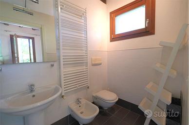V 503 - Splendido appartamento in villa nel cuore di Jesolo Lido! Se sogni unoasi di relax immersa nel verde, questa è loccasione che fa per te! Allinterno del prestigioso complesso immobiliare Linden Park, proponiamo in vendita un elegante appartamento in villa, situato in un grande parco condominiale con zona barbeque, campo da tennis e piscina con solarium attrezzato. Nello stabile di sole 4 unità l'alloggio interessato alla vendita è ubicata al piano TERRA dispone di un ampio giardino privato ideale per momenti di convivialità e relax allaperto. Lappartamento è composto da scoperto esclusivo dal quale si accede direttamente alla zona giorno con cucina, due camere da letto e un due bagni. Il soffitto è travato a vista in tutti i vani della casa e porticato coperto fronte piscina che ne permette un uso riparato e conviviale come stanza alternativa all'aperto. Dispone di passo carraio indipendente alla casa singola con un posto coperto da pompeiana. Completa la proprietà un altro posto auto ancora coperto al piano interrato del Residence nonchè una cantina. Il residence si trova nel cuore di Jesolo, a soli 900 metri dalla spiaggia di sabbia dorata e dal vivace centro della località, alle spalle di Piazza Mazzini. La posizione strategica permette di raggiungere facilmente Venezia, con i suoi canali, musei e monumenti, o di esplorare le attrazioni locali come parchi divertimento e negozi. Perfetto per famiglie, coppie o gruppi di amici che desiderano vivere unesperienza autentica e rilassante sulla splendida costa veneta. Contattaci subito per maggiori informazioni o per prenotare un sopralluogo in questo angolo di relax al Lido di Jesolo! Telefono: 0421 9 RIFERIMENTO: V503 CLASSE ENERGETICA: D 138,41 kWh/m3 a
