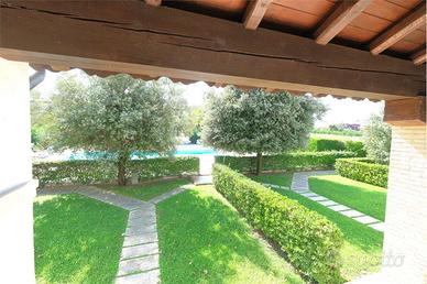 V 502 - Splendido appartamento in villa nel cuore di Jesolo Lido! Se sogni unoasi di relax immersa nel verde, questa è loccasione che fa per te! Allinterno del prestigioso complesso immobiliare Linden Park, proponiamo in vendita un elegante appartamento in villa, situato in un grande parco condominiale con zona barbeque, campo da tennis e piscina con solarium attrezzato. Nello stabile di sole 4 unità l'alloggio interessato alla vendita è ubicata al piano primo con scala privata interna, dispone di un ampio giardino privato ideale per momenti di convivialità e relax allaperto. Lappartamento è composto da un ingresso, soggiorno con cucina, disimpegno, due camere da letto e un due bagni. Il soffitto è travato a vista in tutti i vani della casa e la terrazza fronte piscina è coperta da un porticato che ne permette un uso riparato e conviviale come stanza alternativa all'aperto. Dispone di passo carraio indipendente alla casa singola con un posto coperto da pompeiana. Completa la proprietà un altro posto auto ancora coperto al piano interrato del Residence nonchè una cantina. Il residence si trova nel cuore di Jesolo, a soli 900 metri dalla spiaggia di sabbia dorata e dal vivace centro della località, alle spalle di Piazza Mazzini. La posizione strategica permette di raggiungere facilmente Venezia, con i suoi canali, musei e monumenti, o di esplorare le attrazioni locali come parchi divertimento e negozi. Perfetto per famiglie, coppie o gruppi di amici che desiderano vivere unesperienza autentica e rilassante sulla splendida costa veneta. Contattaci subito per maggiori informazioni o per prenotare un sopralluogo in questo angolo di relax al Lido di Jesolo! Tele RIFERIMENTO: V502 CLASSE ENERGETICA: D 138,41 kWh/m3 a