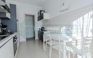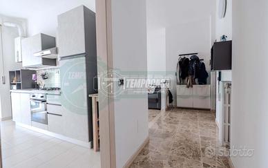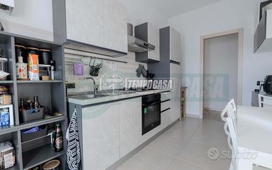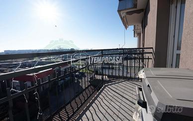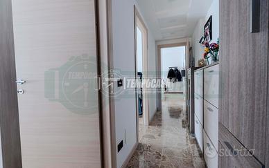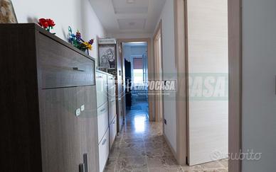 ingresso con vista sull'ampia sala con sfogo sul vivibile balcone, sulla sinistra troviamo il disimpegno dove si sviluppano le altre camere, nell'ordine: cucina abitabile con affaccio, cameretta anch'essa con sfogo sul balcone, camera matrimoniale e bagno con box doccia.