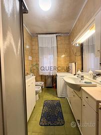 La soluzione dispone inoltre di un ingresso comodo con armadiature su misura, corridoio funzionale che collega le varie stanze, infissi in legno dotati di vetrocamera che garantiscono isolamento termo-acustico ed elementi d'arredo raffinati. Concludono l'immobile infine il suo bagno finestrato dotato di attacchi per lavatrice e asciugatrice e cantina e garage nel piano interrato.