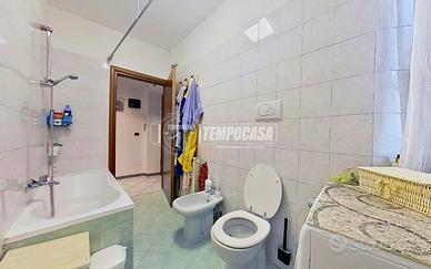 Il bagno è finestrato, completo di box doccia, e nel disimpegno che collega la zona giorno alla zona notte troviamo anche un ulteriore comodo ripostiglio, ideale per organizzare lo spazio in modo efficiente.