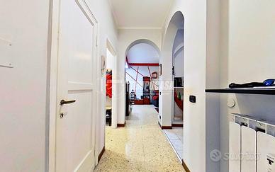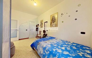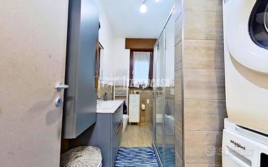 Qui troviamo una camera matrimoniale di ampie dimensioni, una cameretta ben proporzionata, dotata di ripostiglio interno, e un bagno finestrato, recentemente ristrutturato, completo di box doccia e di un pratico angolo lavanderia con lavatrice e asciugatrice impilate.