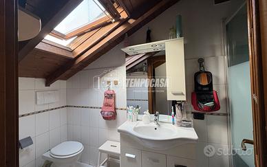 e un bagno con velux, dotato di box doccia, essenziale e ben organizzato.