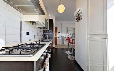 L'ingresso si apre direttamente sulla zona giorno, un ambiente ampio e ben organizzato dove soggiorno e cucina a vista convivono in modo funzionale. La penisola definisce gli spazi senza dividerli, creando una zona operativa pratica e moderna. La luminosità è uno dei punti di forza dell'appartamento: la doppia porta finestra garantisce un'ottima esposizione e conduce al balcone, uno sfogo esterno sfruttabile per un tavolino, qualche pianta o semplicemente per godersi un momento all'aria aperta.