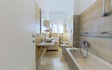 Il bagno, finestrato, è completo di vasca e offre una metratura comoda e ben distribuita.