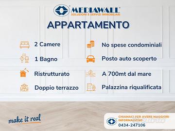 (Riferimento: BR-310-RV) Lignano Sabbiadoro (Rif. BR-310-RV) PALAZZINA DI SOLE 6 UNITA' ABITATIVE COMPLETAMENTE RISTRUTTURATA | APPARTAMENTO BICAMERE | NO SPESE CONDOMINIALI | 2 CAMERE DA LETTO | 1 BAGNO CON BOX DOCCIA | INFISSI IN PVC-DOPPIO VETRO | DOPPIO TERRAZZO | CALDAIA AUTONOMA CON RISCALDAMENTO A PAVIMENTO | ABITABILE TUTTO L'ANNO | CLIMATIZZATO | POSTO AUTO SCOPERTO Proponiamo in vendita, a 500m dal viale pedonale di Sabbiadoro e 700m dal mare, questo splendido appartamento posto al secondo ed ultimo piano di una palazzina di sole 6 unità abitative, appena ristrutturata. L' immobile è così composto: ingresso, zona cucina/soggiorno open-space con accesso all'ampio terrazzo, bagno con box doccia con antistante antibagno, camera da letto matrimoniale e seconda camera da letto con accesso diretto al secondo terrazzo in cui è presente la caldaia a condensazione. Completa, al piano terra, il posto auto scoperto. APPARTAMENTO COMPLETAMENTE AUTONOMO SENZA SPESE DI CONDOMINIO! L'appartamento viene ceduto arredato di blocco cucina e sanitari presenti nel bagno, ed è accessoriato di portoncino blindato, finestre in pvc doppio vetro anta/ribalta con cassonetti isolati, tapparelle nuove motorizzate, climatizzatore in pompa di calore, doppio terrazzo piastrellato e caldaia a condensazione autonoma con riscaldamento a pavimento, permettendone l'utilizzo tutto l'anno! La palazzina è stata completamente riqualificata a nuovo con: rifacimento tetto, grondaie, tinteggiatura esterna e rifacimento dei terrazzini. Inoltre, nonostante l'immobile sia pari la nuovo, la vendita è soggetta ad imposta di registro, garantendo così un risparmio significativo in fase di acquisto! La posizione permette massima comodità nel raggiungere la spiaggia ed il centro a pochi minuti in bicicletta. Contattaci e scopri con noi questa soluzione pari al nuovo che ti permette di vivere al meglio le tue prossime vacanze estive o ti ga