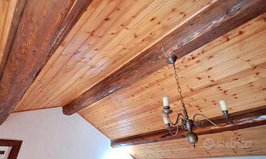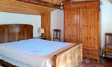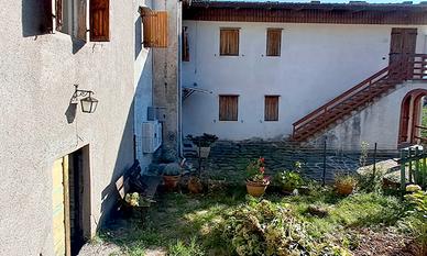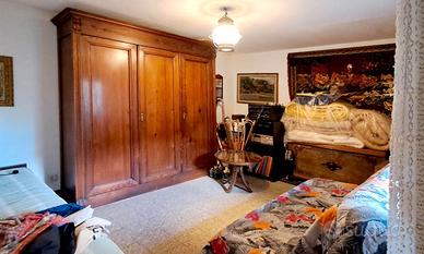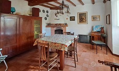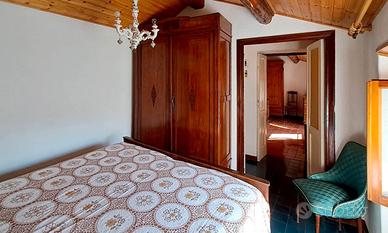 Al piano seminterrato si trovano tre vani ad uso cantina, uno dei quali funge da collegamento alla corte interna esclusiva. Il piano terra accoglie una cucina, un salone con camino, un disimpegno, una camera matrimoniale e un bagno. Una scala conduce al piano sottotetto dove un corridoio con stufa serve due camere matrimoniali, una con piccolo ripostiglio. Gli ambienti presentano pavimentazioni in cotto o piastrelle e soffitti con travi in legno.