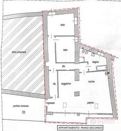 L'immobile è posto al secondo piano ed è cosi composto: è composto da ingresso, ripostiglio, soggiorno/pranzo, angolo cottura, disimpegno, bagno, disimpegno, due camere, balcone sulla zona giorno.