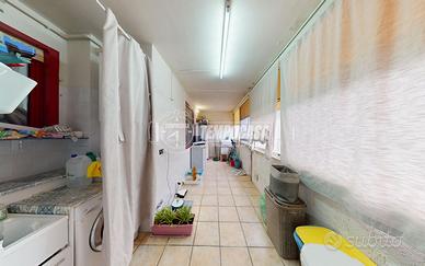 Un grande soggiorno luminoso con cucina, accessibile alla veranda coperta, perfetta per lavanderia e zona relax dove si ha la possibilità di creare un cucinino separato grazie alla predisposizione già presente.