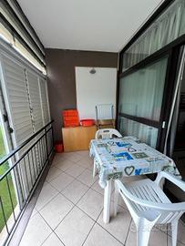 L'appartamento dispone di angolo cottura, sala con divano letto e due letti a castello, una veranda e un bagno. Dispone anche del posto auto del residence e della piscina condominiale.