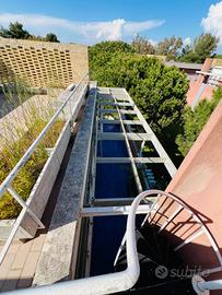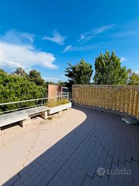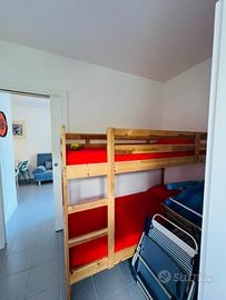 L'appartamento dispone di una camera matrimoniale con bagno annesso, garantendo privacy e comfort, e di una camera singola con letti a castello, perfetta per i più giovani. Ogni stanza ha accesso alla terrazza esterna, dove poter godere di piacevoli colazioni al sole o rilassanti aperitivi al tramonto. L'accesso al solarium privato tramite una comoda scala a chiocciola rende questo appartamento ancora più speciale.