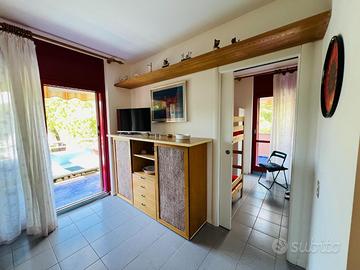 Il giardino condominiale è ampio e curato, offrendo uno spazio verde dove poter trascorrere momenti di relax. La piscina è a disposizione per rinfrescarsi durante le calde giornate estive. Questo immobile si presenta in buono stato e rappresenta un'ottima opportunità per chi cerca un rifugio al mare. Non perdere l'occasione di visitarlo!