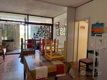 Si propone in vendita in esclusiva un appartamento bilocale di circa 50 mq, situato al piano terra del Residence "C1". L'immobile si compone di camera matrimoniale, soggiorno con divano letto, angolo cottura e bagno finestrato con doccia. La proprietà è inoltre dotata di impianto di climatizzazione e veranda singola con accesso al giardino privato. A completare l'offerta, piscina e parcheggio condominiale.