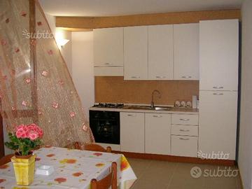 L'appartamento è fornito anche di angolo cottura, reti in doghe in legno e materassi per tre persone, e un ampio armadio.