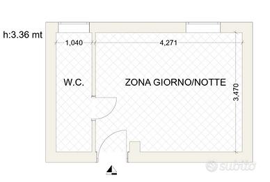 Caratteristiche dell'appartamento: Monolocale con zona giorno-notte con cucina a vista e bagno finestrato.