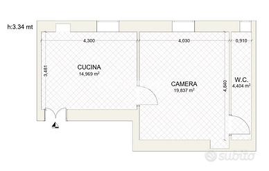 INTERNO: Sito al quarto piano con ascensore. Internamente l'unità è composta da ingresso nel soggiorno con cucina a vista, camera matrimoniale e bagno finestrato.