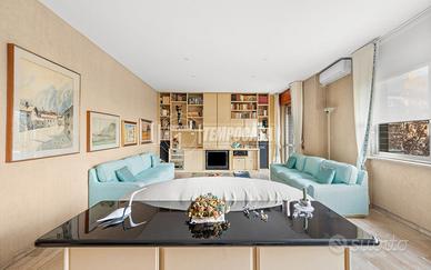 Gli spazi interni, armoniosi e confortevoli, caratterizzano un'abitazione fluida, signorile e sofisticata e si sviluppano attorno al salone triplo di grande fascino, affiancato da una cucina/tinello abitabile, sala da pranzo, due comodi bagni, oltre ripostiglio, e, nella zona notte, due camere da letto.