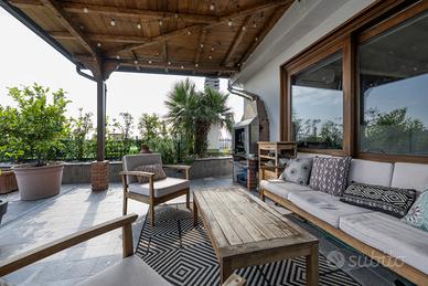 (Riferimento: C7ARX) Rif C7ARX Appartamento con terrazzo, via Tajani 9 Appartamento su due livelli al 9° e 10° piano con terrazzo piantumato panoramico. In zona residenziale tranquilla e ben servita, a pochi passi da Città Studi, proponiamo in vendita uno splendido attico di 165 mq commerciali disposto su due livelli, situato al nono e decimo piano di un contesto signorile con servizio di portineria e facciate condominiali recentemente rifatte unitamente ai balconi. L'abitazione principale si sviluppa al nono piano ed è composta da: - Ingresso - Ampio living con cucina all'americana, perfetto per chi ama gli spazi aperti e conviviali - Tre camere da letto - Due bagni finestrati, di cui uno con vasca e l'altro con ampia doccia - Balcone zona giorno con affaccio arioso e luminoso ed un terrazzino su una delle camere - Vano cantina Una bellissima scala interna di nuova realizzazione collega al piano superiore dove si trova un ulteriore ambiente abitabile di circa 32 mq, comprensivo di zona lavanderia, ideale come studio, area relax o quarta camera. A completare la proprietà, uno straordinario terrazzo piantumato di circa 80 mq, aperto su tre lati e parzialmente coperto da eleganti tettoie: un'oasi privata nel cuore della città, ideale per momenti di relax, pranzi all'aperto o per gli amanti del verde urbano. L'immobile si presenta in ottimo stato, completamente ristrutturato nel 2020 con finiture di pregio e ulteriori migliorie effettuate negli ultimi anni. Pronto da abitare senza necessità di interventi. Impianto di climatizzazione tramite domotica con 5 split. Copertura del terrazzo in gres con zona piantumata ai lati con impianto di irrigazione e splendido barbecue professionale. Prezzo di vendita €. 1.020.000,00. Spese condominiali €. 6.000,00 annue incluso riscaldamento. Certificazione energetica Classe E Ipe 288,84 kWh/m²a La zona è in forte crescita, grazie anche alla nuova linea MM4, che garan