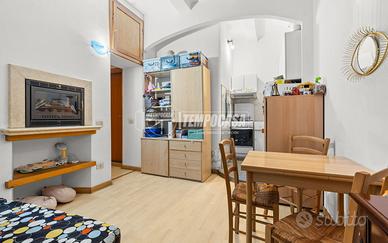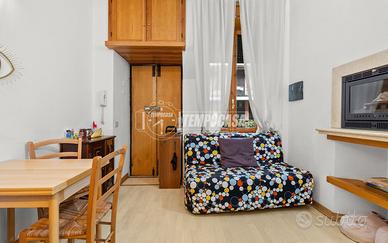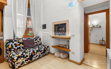 L'ingresso si apre sul soggiorno, un ambiente accogliente dotato di camino decorativo e con accesso alla cucina semi-separata.