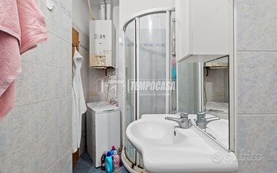 Il bagno cieco è attrezzato con box doccia, sanitari e lavatrice, garantendo tutti i servizi essenziali.