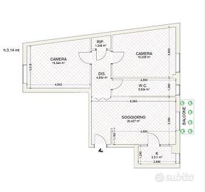 * Taglio dell'appartamento funzionale e ben distribuito